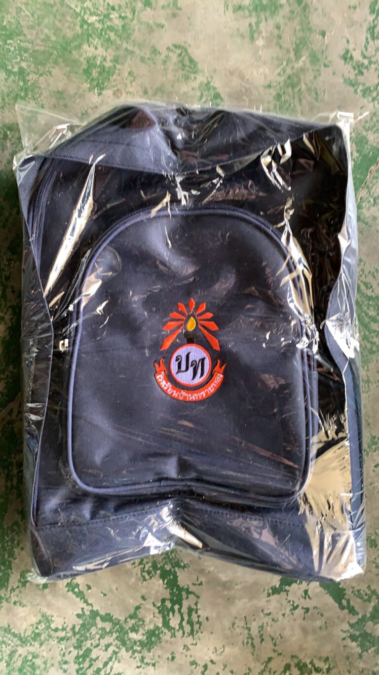 -สกรีนสายสะพายชื่อโรงเรียนด้านหลัง