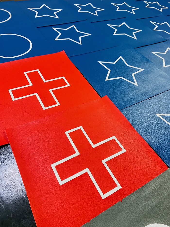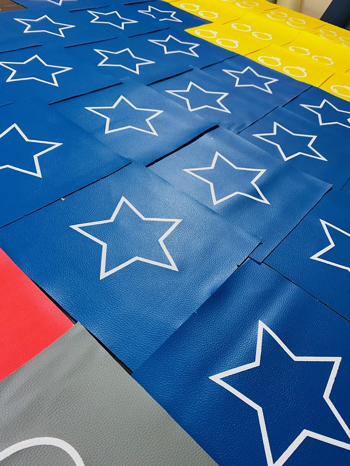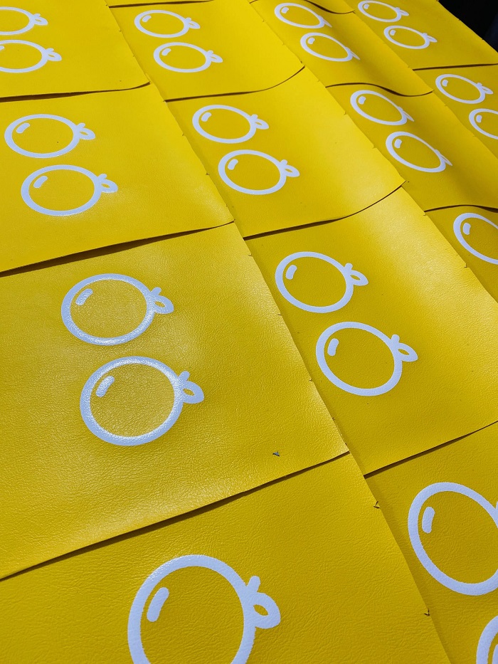 – ตัวอย่างงานสกรีนผ้าหนังสังเคราะห์ (PVC)